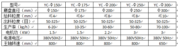 二、φ250礦石圓盤粉碎機參數表: