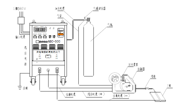 三、NBC-500逆變式CO2氣體保護焊機接線圖: