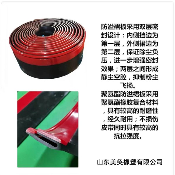 山東美奐是一家生產防溢裙板、雙密封防溢裙板、緩沖床,緩沖條,皮帶機清掃器,清掃箱,各種橡膠板,滾筒包膠橡膠板,菱形膠板,陶瓷膠板,聚氨酯滾筒包膠,聚氨酯制品,聚氨酯耐磨襯板,導料槽擋塵簾,煤礦巷道除塵簾等皮帶*輸送的廠家。
