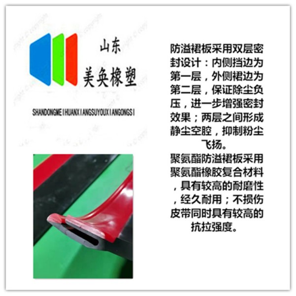 山東美奐橡塑有限公司 庫充充裕導料槽裙板 Y型聚氨酯防溢裙板 防溢裙板夾持器