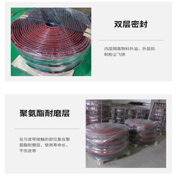 3. 在與皮帶接觸的部位有復合聚氨酯耐磨層,使用壽命長,不傷皮帶。