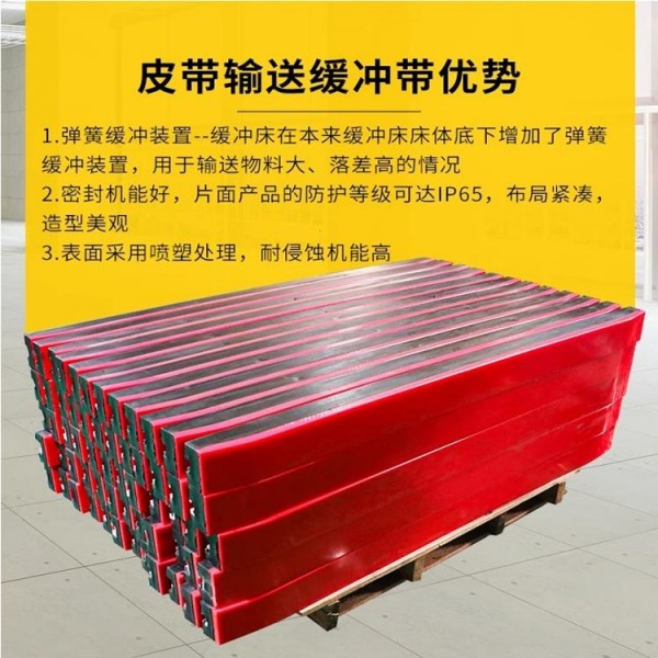3、高彈性的橡膠緩沖層吸收裝料時下部物料對輸送和輸送機架的沖擊能量;高強度的金屬估價可承受大裝載沖擊不會變形。
