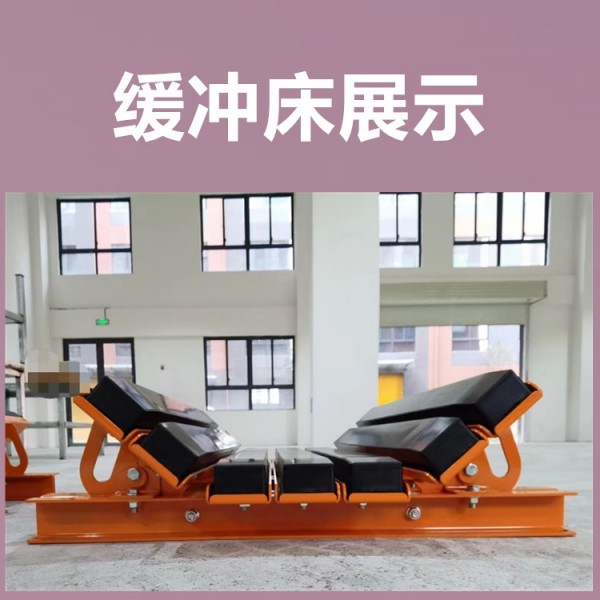 緩沖床是皮帶機落料點的緩沖裝置,該產品針對井下皮帶機落料點,落料流量大、密度大以及以往緩沖托輥易ka料的等情況設計研發。實現了皮帶與緩沖裝置面與面的接觸,光滑的聚乙烯表面確保了皮帶的順滑通過。
