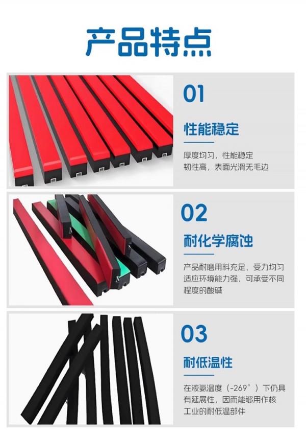 耐磨層材料的選用也是決定緩沖條質(zhì)量好壞的一個(gè)主要因素,耐磨層都是選用聚乙烯板材,該材料的分子含量越高,潤(rùn)滑性能愈好,磨損率越低,聚乙烯板材分子含量越高,自潤(rùn)滑性能越好,耐磨性越好;固定結(jié)構(gòu)的設(shè)計(jì)及用料同樣是決定緩沖條使用壽命的一個(gè)關(guān)鍵點(diǎn)。